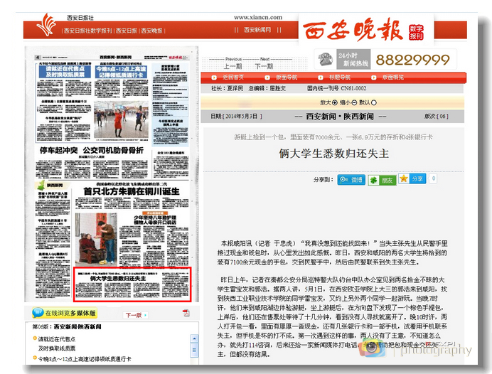 西安晚报—俩大学生游艇上捡到手提包 将失物悉数归还失主