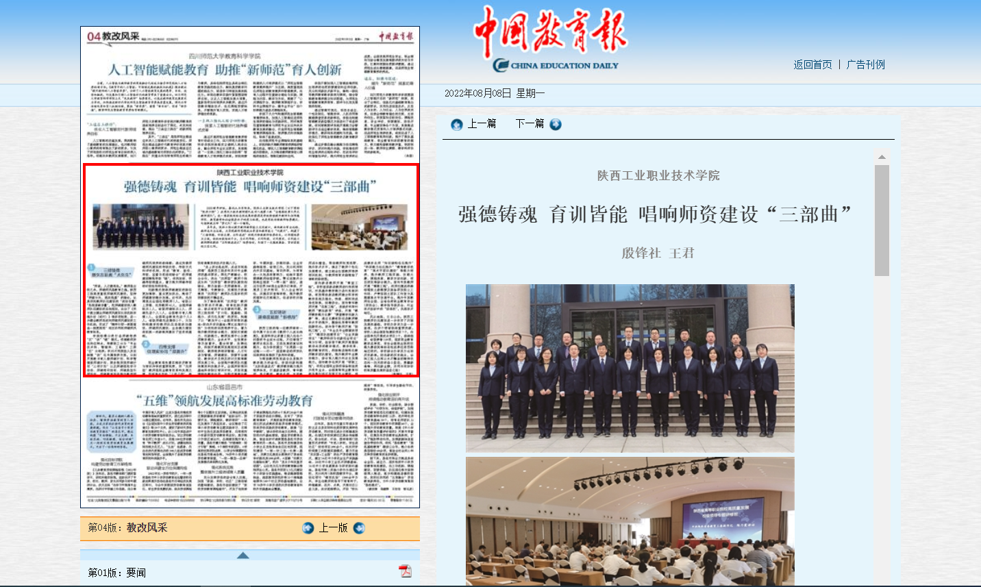 中国教育报2022年8月8日第四版
