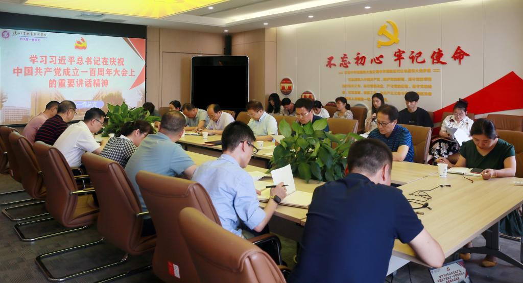 7月1日下午,在集中收看庆祝中国共产党成立100周年大会盛况后,党委书记惠朝阳参加机关一总支学习习近平总书记在庆祝中国共产党成立100周年大会上的重要讲话精神座谈会,与总支全体党员重温党的光辉历程,从讲话中汲取精神力量,将党史学习教育成效转化为推动学校高质量发展的生动实践。