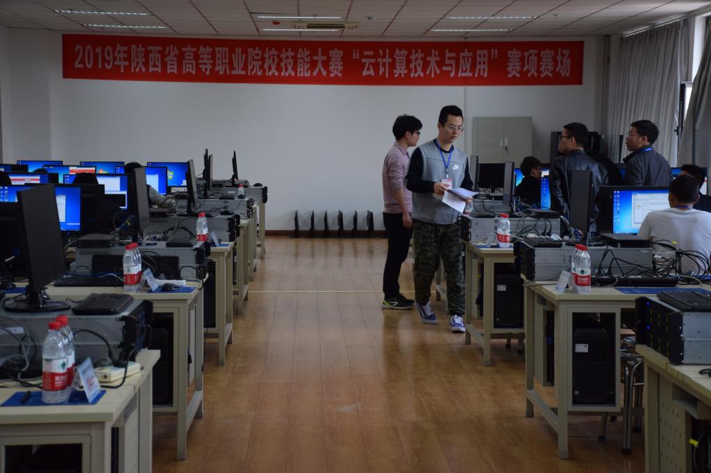 3月30日,2019年陕西省高等职业院校技能大赛“云计算技术与应用”赛项在我院精艺楼五层计算机仿真实训室举行。本次赛项由陕西省教育厅主办,我院承办,南京五十五所技术开发有限公司技术支持。来自杨凌职业技术学院、西安航空职业技术学院、陕西交通职业技术学院及我院等13所高职院校25支队参加比赛。
