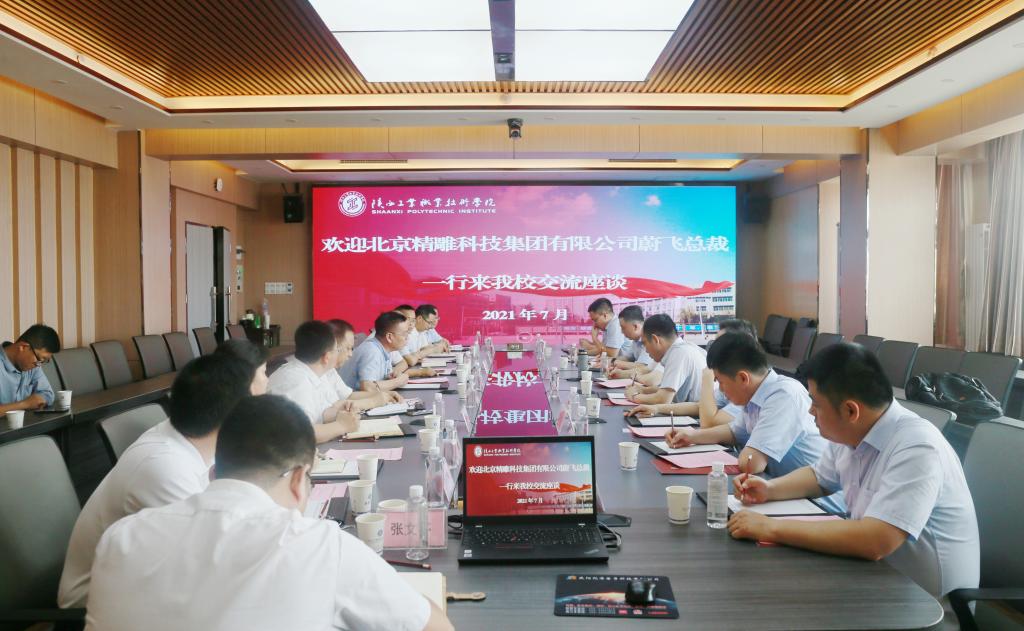 7月8日上午,北京精雕科技集团有限公司蔚飞总裁一行8人来我校洽谈校企合作事宜,我校刘永亮校长、梅创社副校长、机械工程学院、双高办、科研处、教务处、西部产教融合研究院等相关负责同志与来宾座谈交流,会议由梅创社副校长主持。