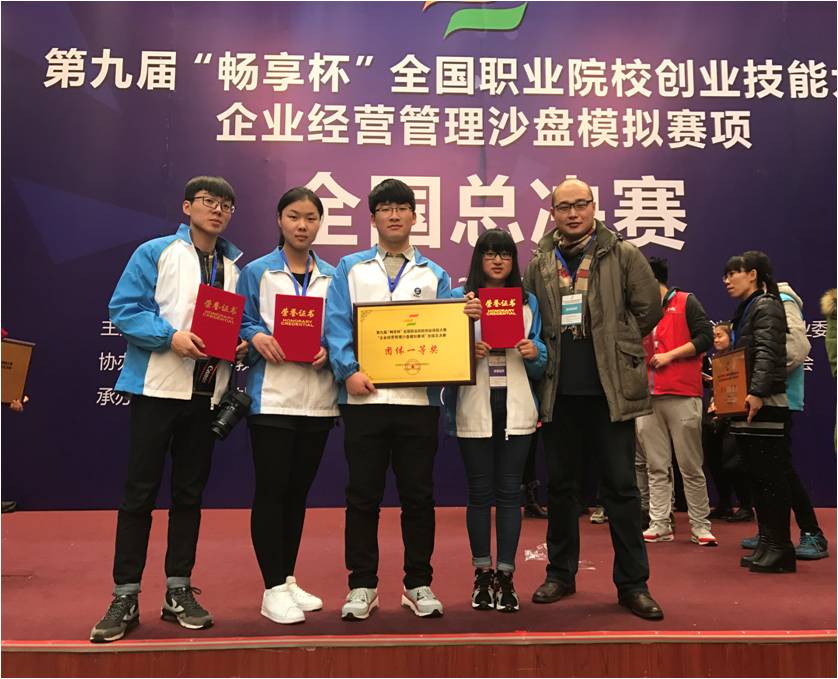 12月25日,第九届全国职业院校企业经营管理沙盘模拟竞赛在山东泰安落下帷幕。来自全国29个省市、130余所高职院校、10余所本科院校的156只代表队参加了全国总决赛。经过6个多小时的激烈比赛,由我院物流管理学院连锁1501、1502班李显、李煜坤、赵海娟、陈英茹四名同学组成的参赛代表队获得团体一等奖,指导教师张庆、刘辉获得优秀指导教师称号。