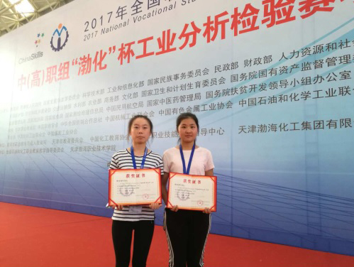 5月11日,全国职业院校技能大赛“渤化”杯工业分析检验赛项中高职组比赛在天津落幕,来自全国31个省、市、自治区的114个代表队的228名选手参加了比赛,其中高职代表队57个,参赛选手114名。经过三天的激烈比拼,我院化工与纺织服装学院代表队在指导教师团队尚华、纪惠军、彭梦姣、李婧和参赛的化工1501班党扬、工检1501班薛志华同学的共同努力下,荣获该赛项团体二等奖第一名的好成绩,党扬、薛志华两位同学还取得国家级“化学检验工”高级工资格。