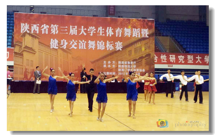 10月27日,由陕西省教育厅主办,省学生体育协会、陕西师范大学承办的第三届陕西省大学生体育舞蹈暨健身交谊舞锦标赛在陕西师范大学举行。经过预赛、半决赛、决赛的激烈角逐,我院体育舞蹈队各参赛项目均取得优异成绩:其中,健身交谊舞慢三、快三、伦巴、快四、吉特巴等12个单项获得第一名,拉丁恰恰、牛仔等5个单项获得第二名。