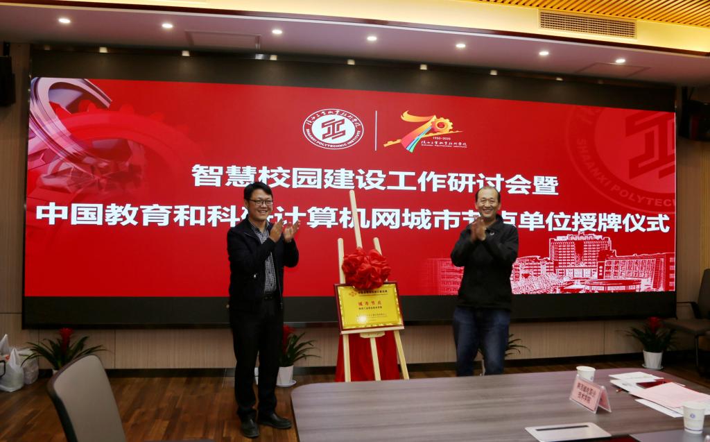 11月20日下午,智慧校园建设工作研讨会暨中国教育和科研计算机网城市节点单位授牌仪式在我院崇文楼九楼第一会议室举行。我院副院长梅创社,中国教育和科研计算机网专家委员会委员、西安交通大学网络信息中心总工李卫,西北工业大学信息化与建设管理处副处长禹亮,西藏民族大学、咸阳师范学院、陕西国际商贸学院、咸阳职业技术学院、陕西能源职业技术学院、陕西财经职业技术学院、陕西邮电职业技术学院等兄弟院校的同仁以及赛尔网络陕西分公司总经理刘明辉等成员参加了授牌仪式。会议由我院信息化与网络安全处处长郝平主持。
