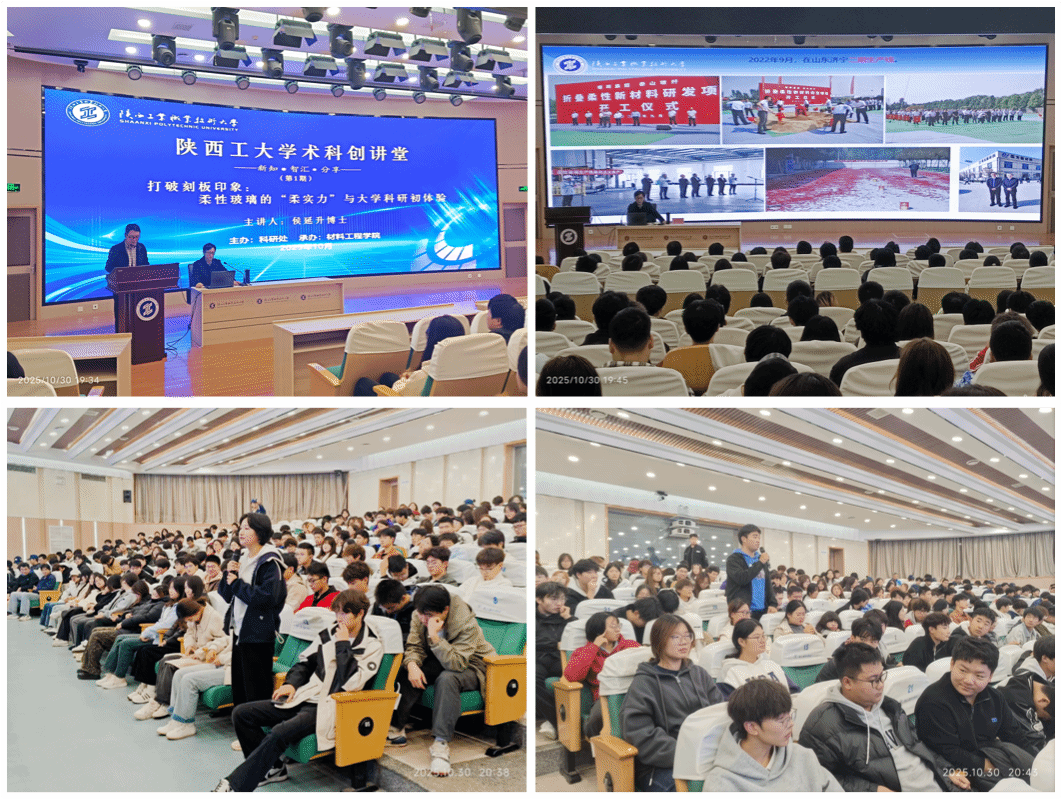 10月30日晚,由学校科研处主办、材料工程学院承办的“陕西工大学术科创讲堂(第1期)”在渭城校区学术会堂圆满举行。本次活动以“打破刻板印象:柔性玻璃的‘柔实力’与大学科研初体验”为主题,特邀材料工程学院侯延升博士担任主讲,吸引了400余名师生积极参与。科创讲堂由材料工程学院党总支书记郝平主持。