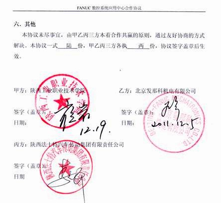 12月19日,经过为期三个多月的考察协商,由北京发那科机电有限公司支持建设、陕西法士特汽车传动集团有限公司参与建设的 “FANUC数控系统应用中心”正式签约我院,这是我院校企合作的又一盛事,建成后的“星空网页版登录入口FANUC数控系统应用中心”将成为发那科公司在西北的一个窗口, 承担FANUC公司在西北地区(面向学校、企业、行业)的数控系统技术培训、师资培训、企业职工培训和技术服务等工作。
