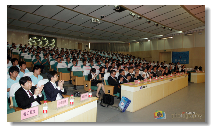 欧姆龙(中国)公司董事长兼总经理土居公司用汉语简要介绍了具有80年历史的欧姆龙集团的基本情况、企业理念等,并向完成学业的欧姆龙班同学表示祝贺。