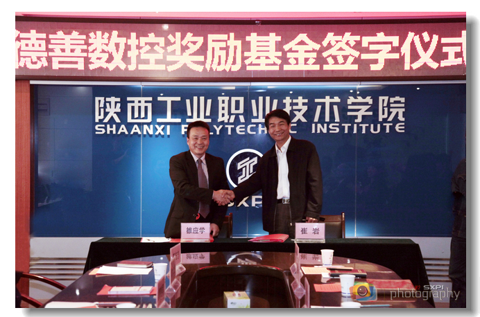 3月8日下午,“德善数控奖励基金”签字仪式在崇文南楼第一会议室举行,广州市德善数控科技有限公司董事长雒应学与我院院长崔岩在协议书上签字,由德善公司在我院数控工程和材料工程学院设立25万元的奖学金和教师科研基金,并优先提供学生、教师的实训实践岗位。党委副书记王天哲,副院长王晓江,数控工程学院、材料工程学院、教务处、学生处、校企合作处负责同志及学生代表一同出席了签字仪式。数控工程学院党总支书记南欢主持仪式。