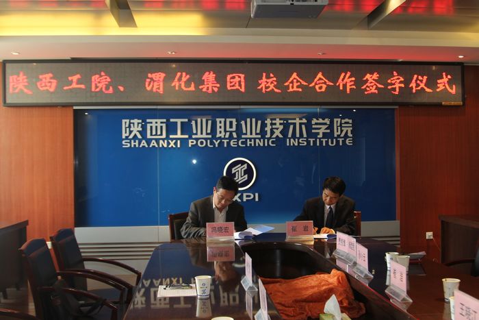3月27日下午,我院与陕西渭河煤化工集团有限责任公司(简称渭化集团)校企合作签字仪式在崇文九楼会议室举行,渭化集团副总经理冯晓宏,我院领导崔岩、王晓江,化工与纺织学院、教务处、校企合作处等负责同志出席了签字仪式。签字仪式由王晓江副院长主持。根据协议,我院将在渭化集团设立“实习基地”,作为应用化工技术专业学生的实训、就业场所;渭化集团每年在我院招聘优秀毕业生在对口岗位进行顶岗实习并择优录用;同时,渭化集团也将在我院设立“陕西渭河煤化工集团有限责任公司产学研基地”。