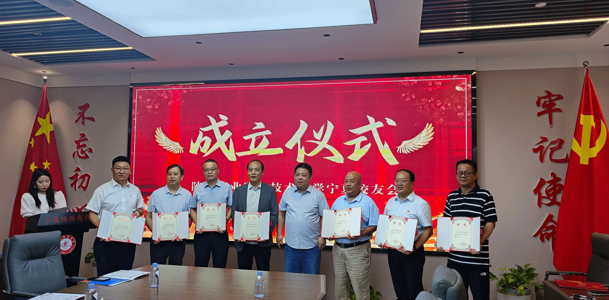 宁夏校友会成立大会由银川华新智信息技术有限公司董事长、宁夏陕西商会会长黄维斌校友,宁夏小巨人机床有限公司机械加工工厂厂长王民利校友等积极筹备和协调组织。学校校友办、就业指导处、校企合作处、继续教育与培训学院、机械工程学院等相关负责人共同见证并参加了宁夏校友会的成立仪式。