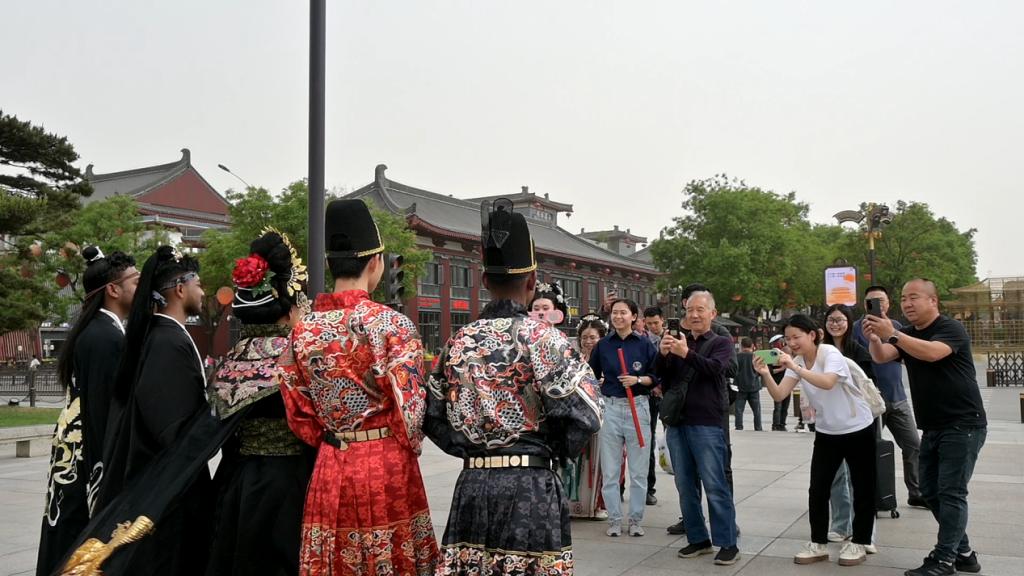 中华优秀传统文化源远流长。我们来到了大雁塔,"中国有礼仪之大,故称夏;有服章之美,谓之华。"团队成员为留学生教授讲解古代礼仪,留学生认真学陕西话“么麻达”。