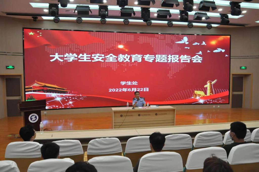 为切实加强大学生安全教育,6月22日,学生处邀请咸阳市公安局渭城分局经文保大队王潮大队长在学术会堂做大学生安全教育专题报告。报告会由学生工作部(处)长郝军主持。