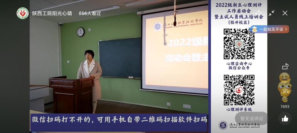 为全面、系统的掌握我院2022级新生的心理健康状况,进一步推进我院大学生心理健康教育工作更好地开展,心理咨询中心分别于10月13、14日下午,在渭城、经开两校区召开了2022级新生心理测评工作启动会暨主试培训会,并进行了线上同步直播。学工部部长、学生处处长郝军,学生处副处长耿丽、学生处心理咨询中心工作人员、各二级学院心理专干、心理委员代表、大学生心理健康协会成员代表参加了本次大会,2022级全体心理委员、宿舍长线上参会。大会由学生处心理咨询中心刘园主持。