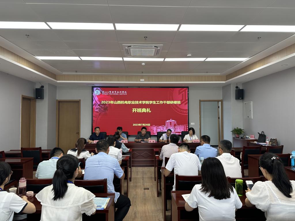 7月26日上午,山西机电职业技术学院学生工作干部高级研修班开班典礼在我校经开校区启新楼培训教室举行。山西机电职业技术学院党委副书记李海增、学工部部长李红玲、我院副院长段峻、继续教育与培训学院院长乌军锋、学生工作部部长、学生处处长郝军以及全体参培教师共计30余人参加了本次开班典礼。开班典礼由乌军锋主持。