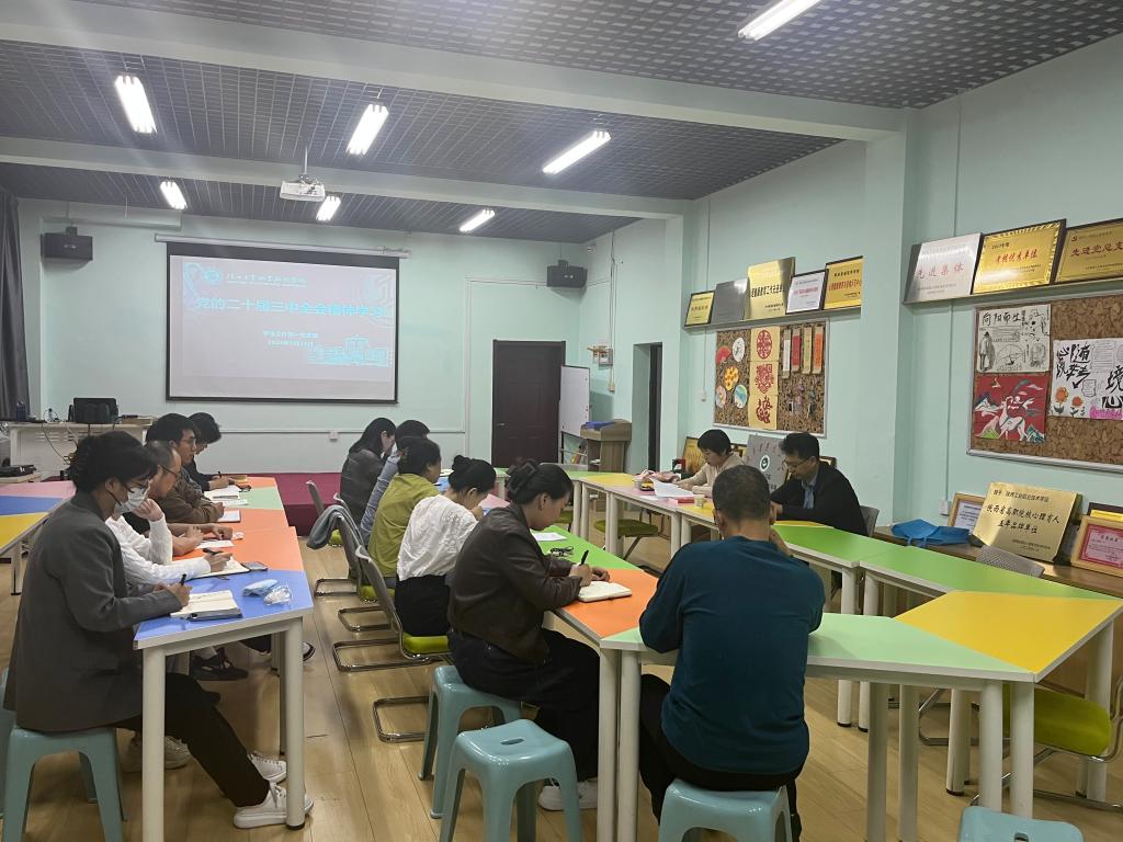 为深入贯彻落实党的二十届三中全会精神,9月29日,学生工作党总支第一党支部组织全体党员在格物楼一楼心理团辅室开展集体学习。