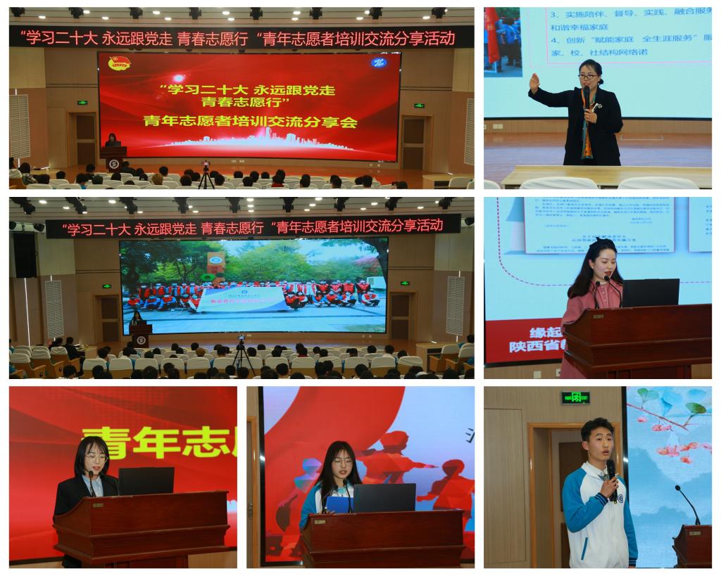 为深入学习宣传贯彻党的二十大精神,全面落实习近平总书记关于志愿服务系列重要指示精神,大力推进新时代文明实践学雷锋志愿服务活动,3月2日下午,我校在渭城校区学术会堂举办了“学习二十大 永远跟党走 青春志愿行”青年志愿者培训交流分享活动,并在经开校区设立分会场。学校春雷青年志愿者大队、各二级学院青年志愿者组织、志愿公益类学生社团师生代表,共计400余人,参与了此次活动,此次活动还通过“陕西工院共青团”微信公众号进行直播,1000余名师生进行观看了直播。