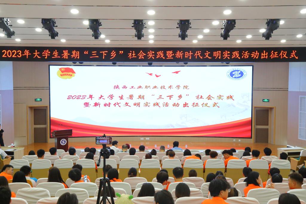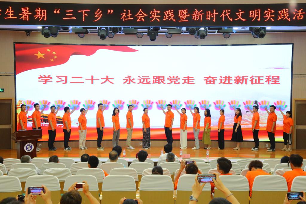 7月6日下午,我校在学术会堂举行2023年大学生暑期“三下乡”社会实践暨新时代文明实践活动出征仪式议程。党委副书记田昊,党委宣传部部长王金辉,学工部部长、学生处处长郝军,各二级学院党总支书记、团总支书记、暑期社会实践团队指导老师、学生代表共计300余人参加了出征仪式。仪式由团委副书记薛媚主持。
