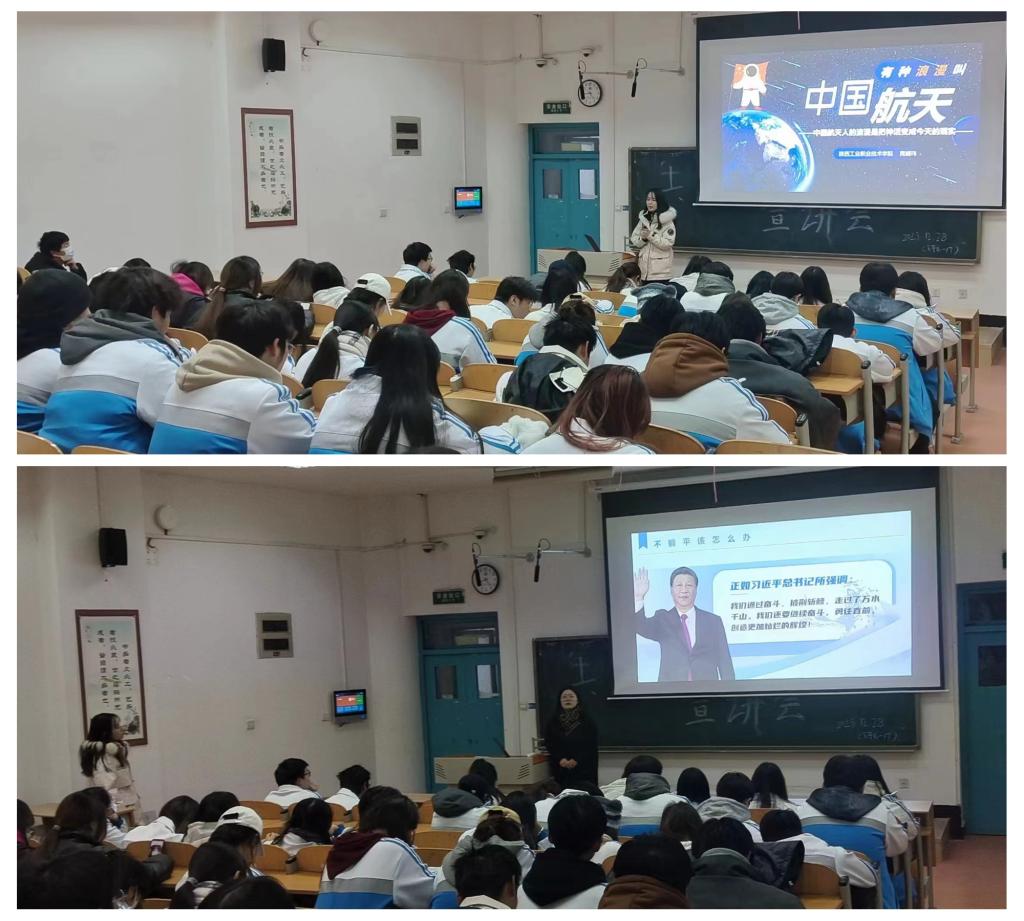 咸阳市青年讲师团成员胡瑞霞和晁晴玮分别围绕“挺膺担当”和“航天精神”为主题,引经据典与团员和青年共同体悟原理、答疑解惑、交流感想,结合我国各行业先辈们矢志报国的奋斗故事,引导青年学子筑牢对党忠诚、树立远大理想,立足学科特长,用青春行动谱写建功新篇章。马院青年教师讲师团立足实际,遵循教育规律,结合学校团员和青年特点,创新方法,以理论结合实际,用故事以小见大,围绕“坚定理想信念”“党的自我革命”“坚定文化自信”“生态文明建设”等内容,引导学生感悟思想伟力,接受理论的滋养,汲取前行动力,不断为学生筑牢坚实的理论根基和铸造充盈的精神内核。青马学员们利用晚自习时间深入各二级学院团支部中,以学生的视角讲好新时代十年的伟大成就与变革,围绕着贴合学生生活实际的“文化自信”“科创报国”“乡村振兴”等内容,充分发挥朋辈示范引领的作用。
