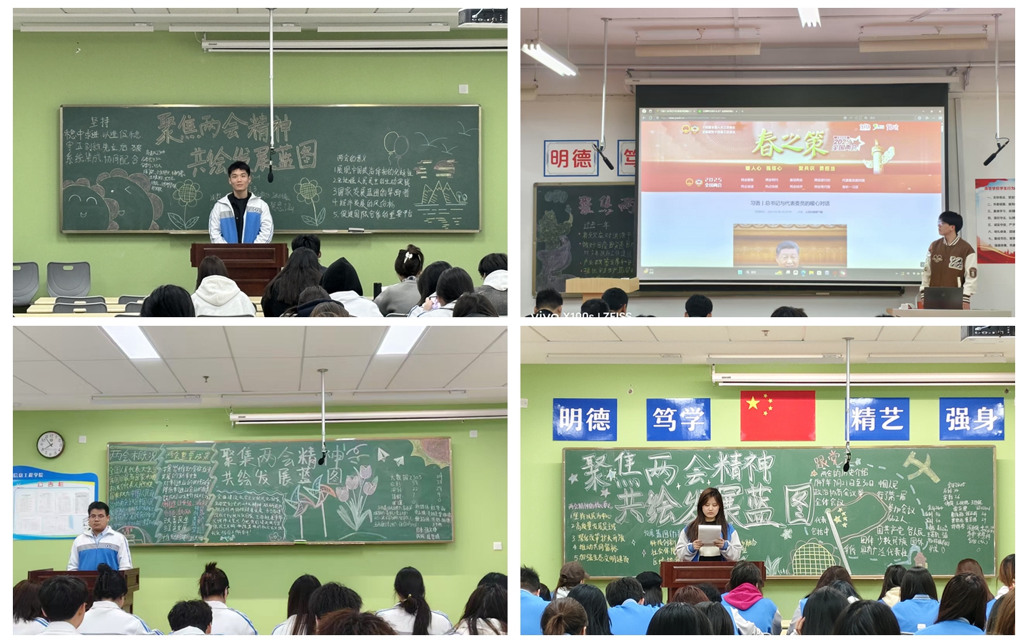 为深入学习贯彻全国两会重要内容及精神,准确把握两会精神实质,引导广大青年将个人理想与国家发展紧密结合,关注国家大事,增强政治意识,厚植爱党爱国情怀,强化作为团员青年的使命担当,为实现中华民族伟大复兴的中国梦贡献青春力量。校团委制定活动方案,全校各班团支部于3月11日晚自习在各班教室开展了“聚焦两会精神,共绘发展蓝图”主题团日活动。