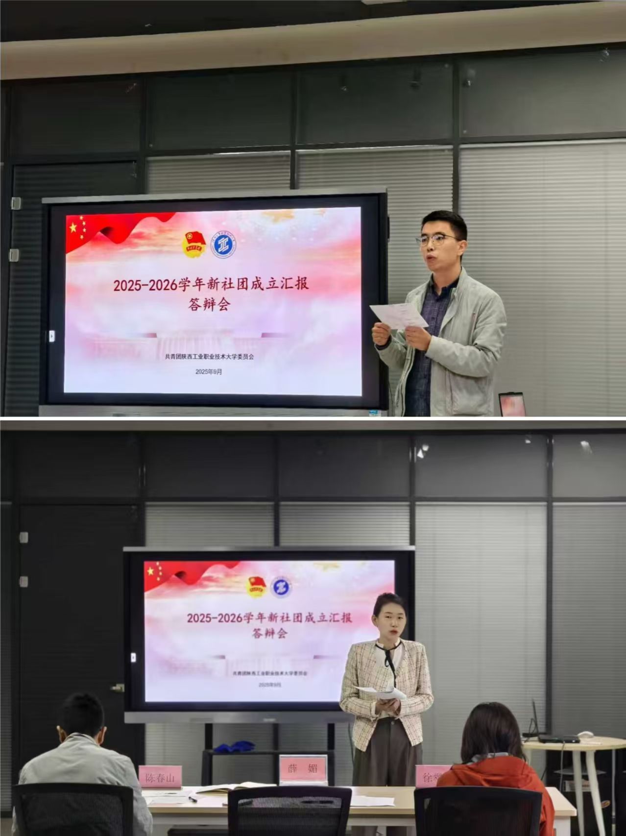 9月23日上午,我校在渭城校区大学生创新创业实践中心举行新申请成立社团答辩会,校团委书记薛媚、电气工程学院学工办主任陈春山、社团管理中心指导教师徐翠萍担任评审。