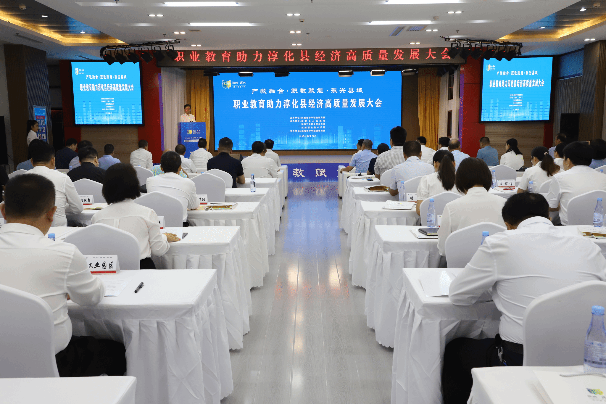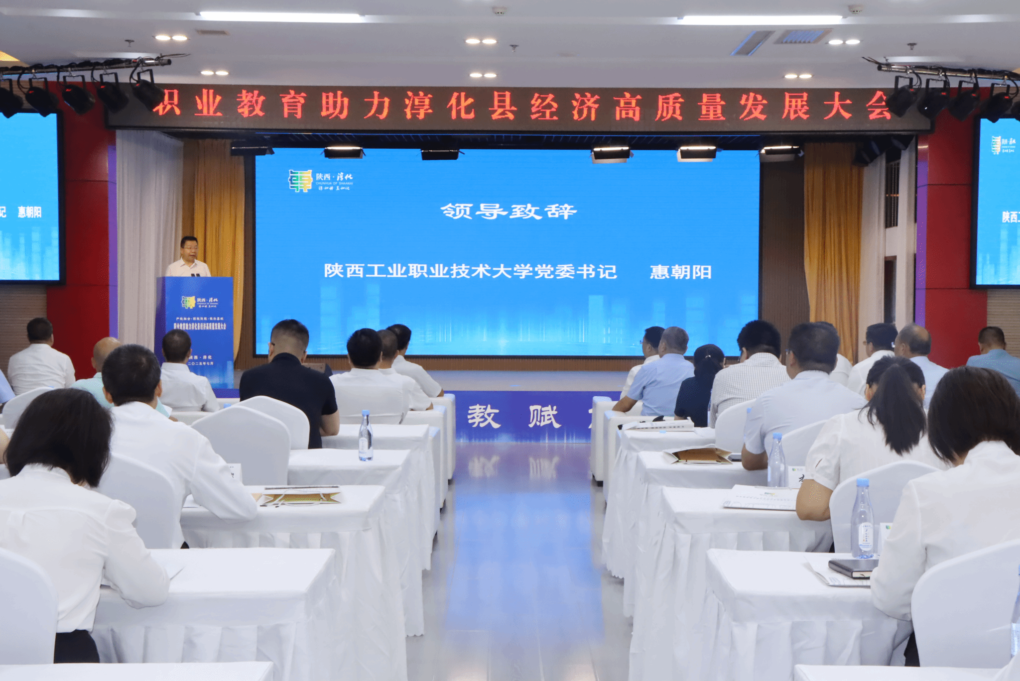 7月23日,由陕西省中华职业教育社主办,我校联合咸阳职业技术学院、淳化县人民政府共同承办的“职业教育助力淳化县经济高质量发展大会”在淳化县顺利召开。省政协副主席、省中华职业教育社主任李忠民,省社会科学界联合会党组成员、副主席李谫博,机械工业教育发展中心主任陈晓明,上海市教科院职教所所长张晨,咸阳市政协副主席、市中华职业教育社主任房晓飞,咸阳市科技局副局长陈振宁、咸阳市教育局四级调研员李敢创等领导出席,我校党委书记惠朝阳、咸阳职业技术学院校长杨卫军、陕西农林职业技术大学副校长胡俊鹏、陕西能源职业技术学院党委副书记任向明、西安技师学院副院长张大宁、陕西省电子信息学校党委书记顾学福、咸阳市秦都职教中心副校长君小斌等院校领导参加大会。