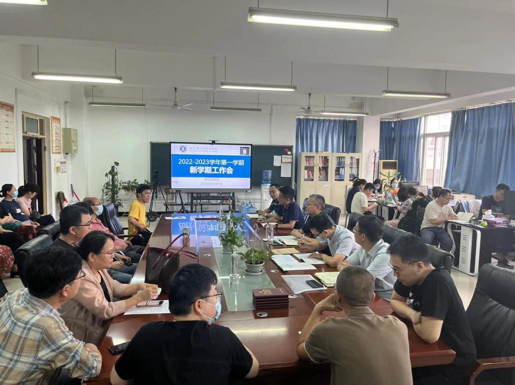 9月8日下午,电气工程学院在行知楼A502召开了新学期工作动员会,总结暑期各项工作,并对新学期重点工作任务进行安排部署,电气学院全体教师以线上、线下两种方式参加本次会议,会议由院长夏东盛主持。
