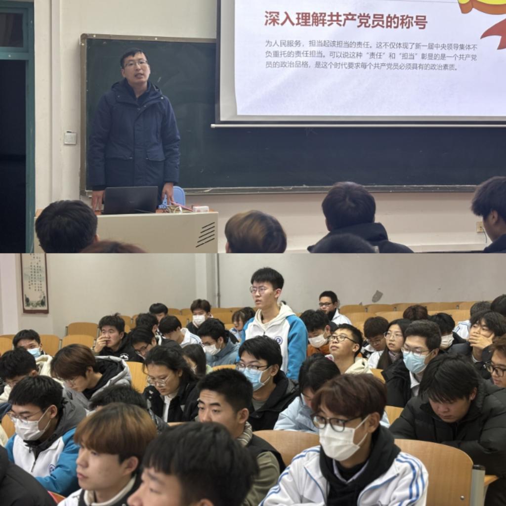 为进一步推动学习贯彻习近平新时代中国特色社会主义思想走深走实,落实主题教育“学思想、强党性、重实践、建新功”的总要求,引导学生党员坚持学思用贯通、知信行统一,12月21日下午,电气工程学院学生第二支部书记赵松以“心怀责任,勇于担当”为题,为全体学生党员、入党积极分子100余人讲授专题党课。