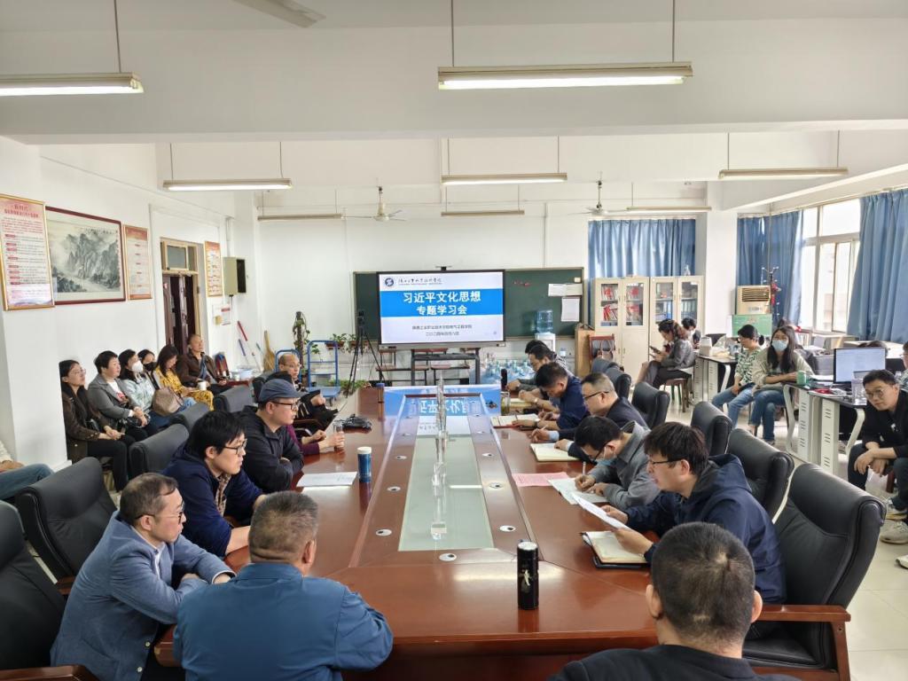 最后,刘其兵书记做了总结发言。针对如何贯彻落实习近平文化思想,刘书记结合实际谈了以下三点:一是要做习近平文化思想忠实的拥护者。要深入学习,深刻理解习近平文化思想的精髓要义,以学习提升自我道德修养、党性修养,做新时代的文化人;二是做习近平文化思想的有力宣传者,在课内课外、线上线下,校内校外大力宣传,聚焦课堂教学、会议活动、对外合作等工作中贯穿始终,用好两个课堂,三个平台弘扬真善美,传播正能量;三是要做立德树人的创新者。聚焦教材、教法、学风建设、心理育人、就业育人等重点领域,将习近平文化思想贯彻落实到人才培养的全过程各环节。