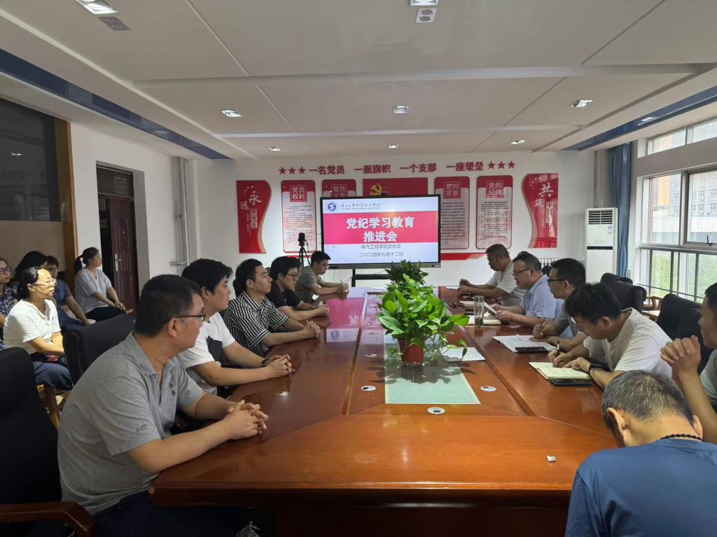 为深入推进党纪学习教育,7月12日下午,电气工程学院党总支在行知楼A5楼党员活动室召开党纪学习教育推进会,全体党员参加了会议。