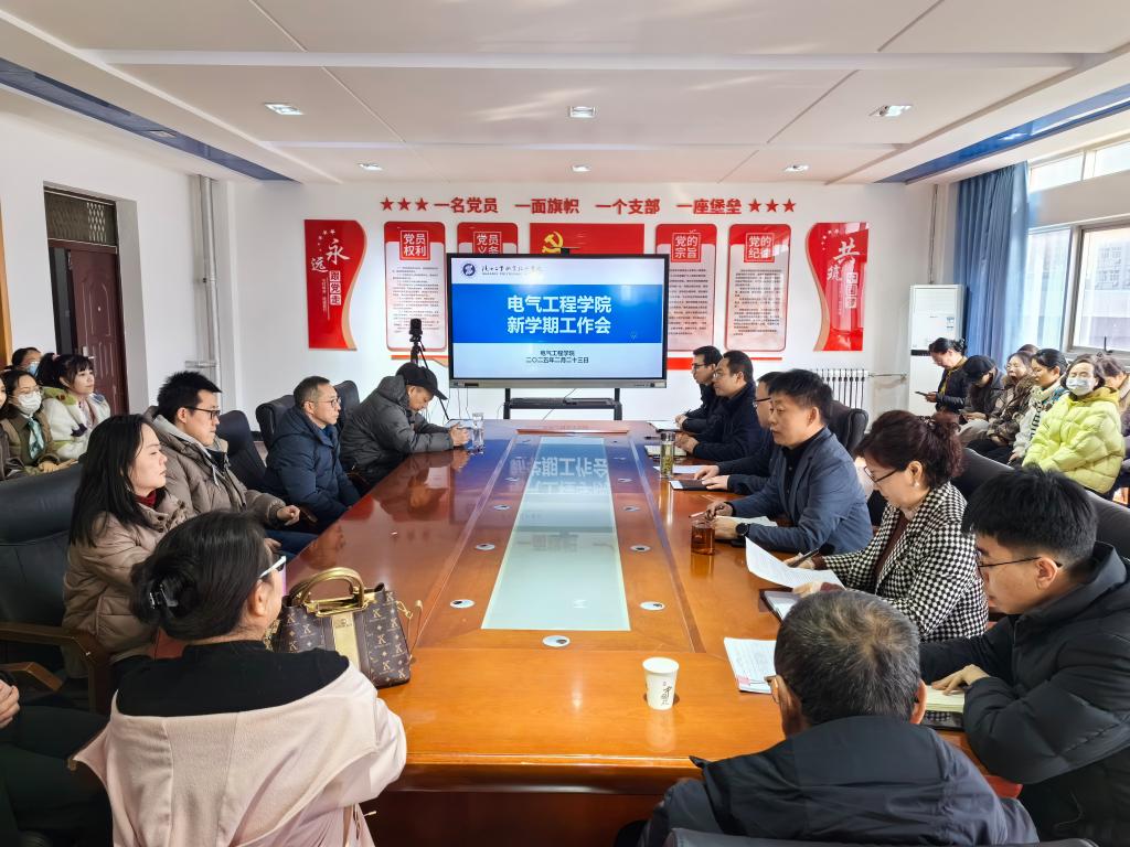 2月23日,电气工程学院新学期工作会议在学院会议室召开。本次会议旨在全面部署新学期工作,明确发展目标,加强教学管理与实训室建设,进一步推动学院的“双高建设”与职业本科建设。电气学院全体教师参加了会议。