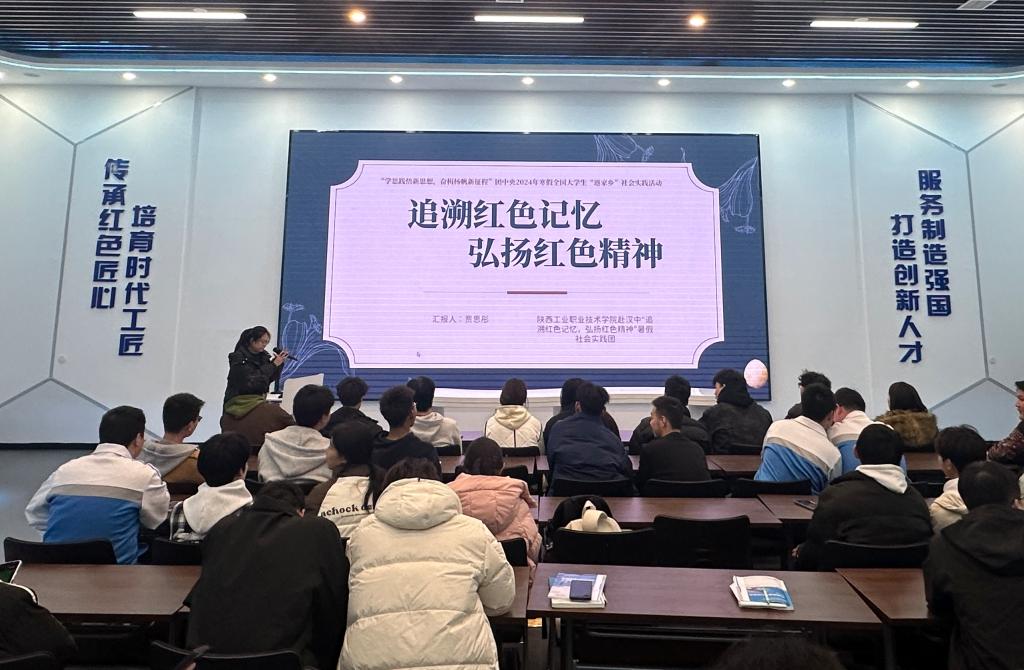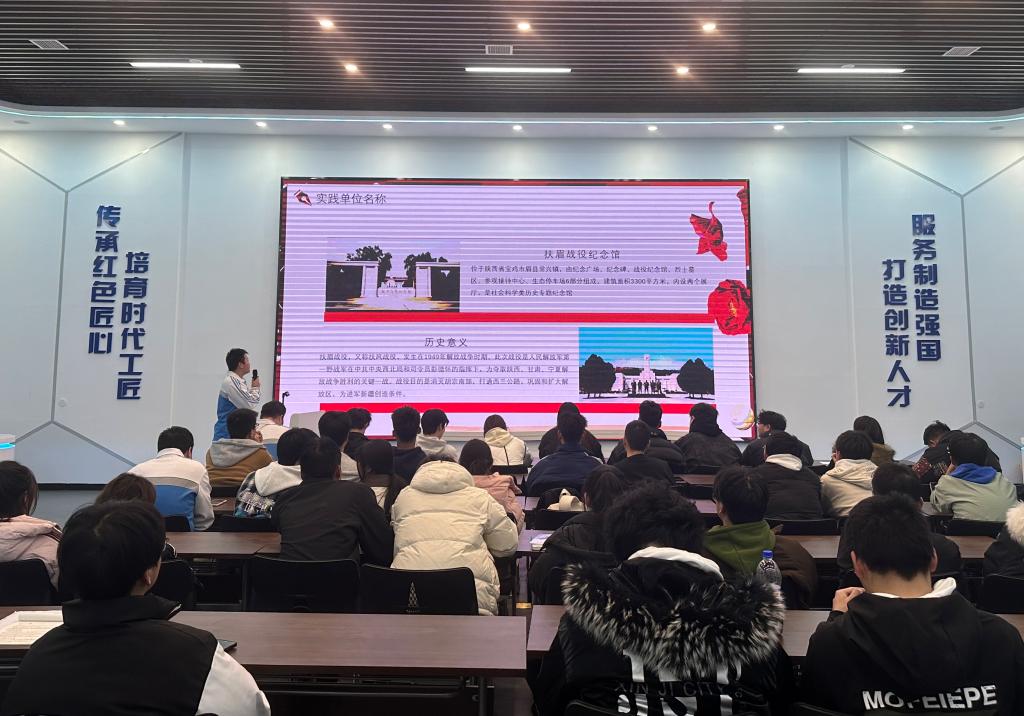 活动开始,主持人向大家介绍了学校对此次寒假实践活动的指示和要求,并请实践活动代表依次上台展示实践结果。20个实践团队的负责同学上台通过图文结合、视频播放等方式呈现了实践过程及实践收获,他们的选题包含“工院我代言”,去往家乡高中宣传陕工院;“重走革命路”,在革命圣地瞻仰英烈墓碑,学习革命故事;“志愿服务青力量”,回到家乡美化环境,贡献“青年力量”等。各团队汇报完毕后,评委同学为实践团现场打分,最终结合前期表现及现场分数,评选出了5个优秀团队和10位先进个人。活动最后,辅导员张亦乐进行总结,希望大家能够将此次经历分享给更多的人,带动同学们关注社会、投身实践,做有理想、敢担当、能吃苦、肯奋斗的新时代好青年。