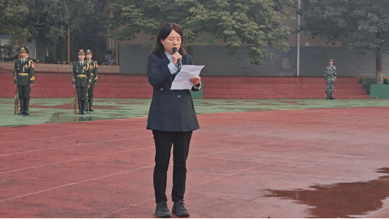 仪式最后,机械学院党总支副书记郭旭华老师发表讲话。她首先对2025级新生的到来表示热烈欢迎,并指出,在中华人民共和国成立76周年之际举行升旗仪式具有特殊意义。她勉励全体同学要坚定理想信念,将爱国情、强国志转化为报国行,刻苦学习专业知识,练就过硬本领,为实现制造强国战略目标贡献青春力量。