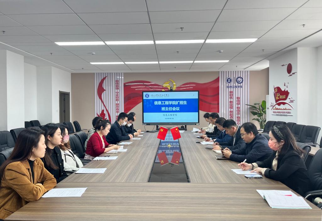 为进一步推进信息学院扩招生毕业、就业指导与服务工作,4月12日中午,信息学院在崇理楼c801召开扩招生班主任工作会议,信息学院党总支书记闫军、副院长白国政、学工办主任穆昌、教学办主任宋承继及扩招生辅导员、班主任参加了会议,会议由学工办主任穆昌主持。