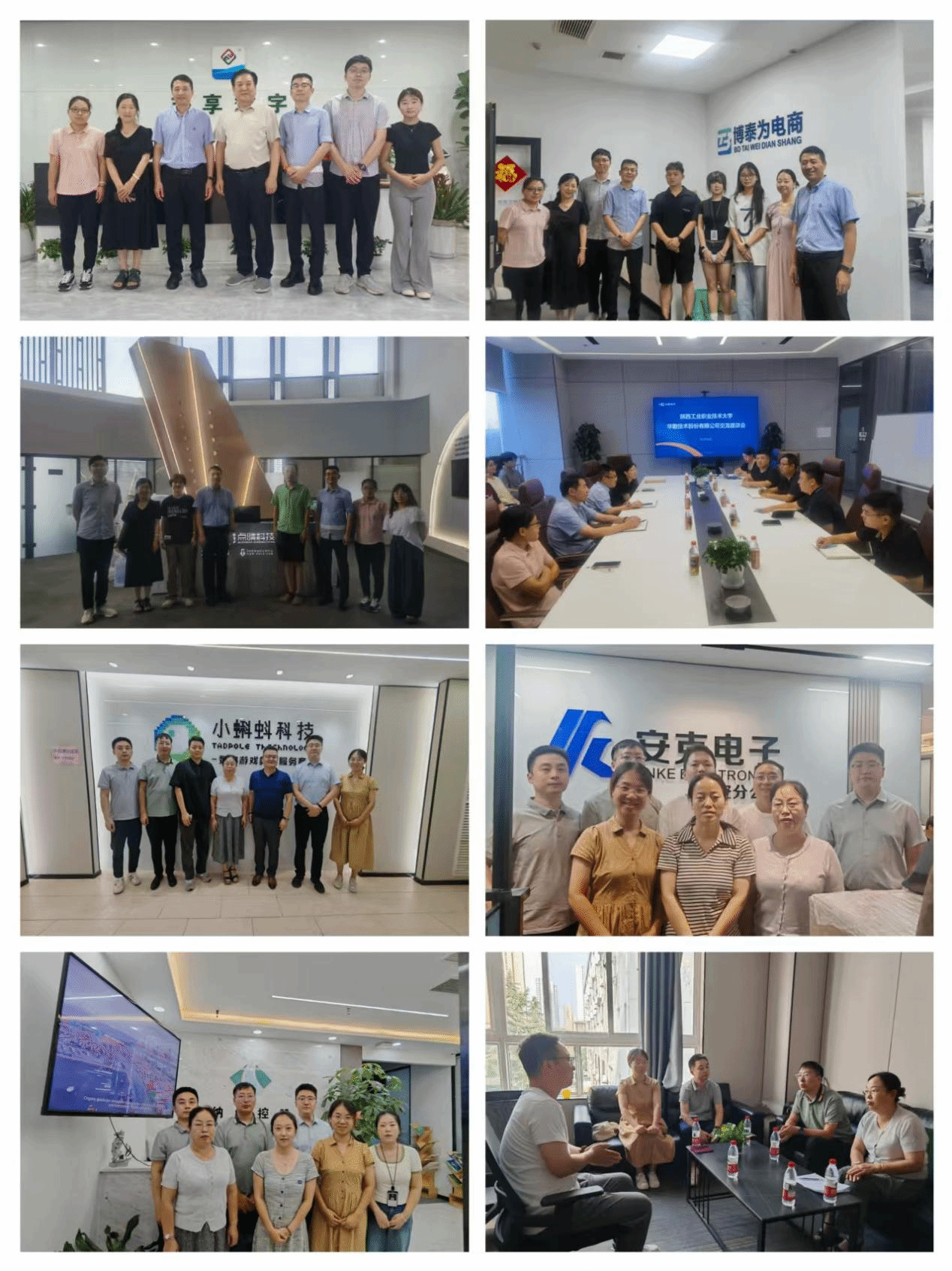 为进一步深化校企合作、构建协同育人共同体,精准提升毕业生就业竞争力。8月27日,信息工程学院组织领导干部、专业教师以及辅导员分组队前往戎商军创(陕西)科技有限公司、陕西博泰为网络科技有限公司、西安点晴信息科技有限公司、西安易朴通讯技术有限公司高新分公司、西安亿颗糖电子科技有限公司、西安安克电子有限公司、西安纳维通讯技术有限公司、西安小蝌蚪数码科技有限公司等8家企业开展访企拓岗调研活动。