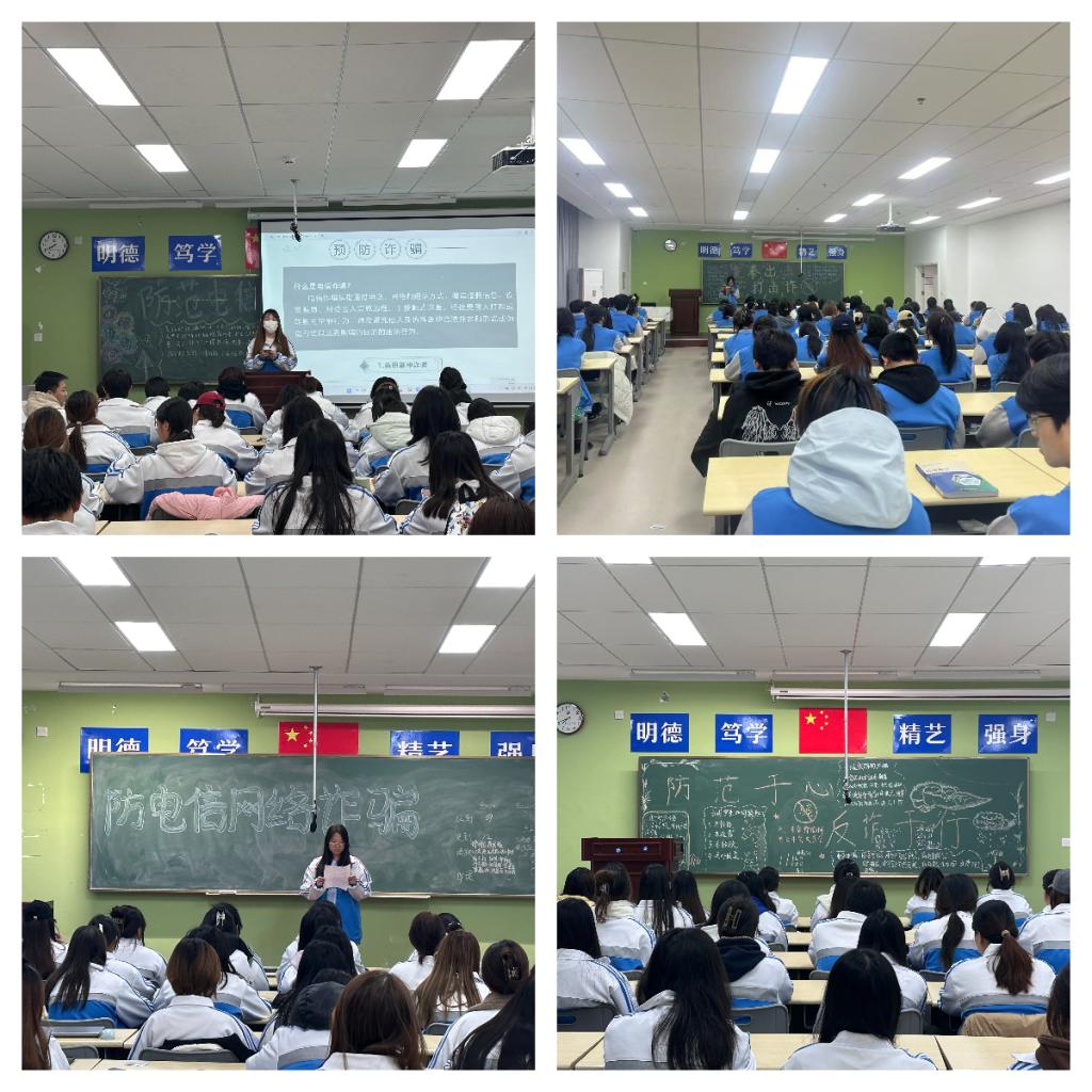为全面提升广大学生防骗反诈意识,有效遏制电信诈骗案件的发生,进一步筑牢防范电信诈骗的坚固防线。12月9日晚自习期间,财经学院组织各年级学生开展防范电信诈骗主题班会。
