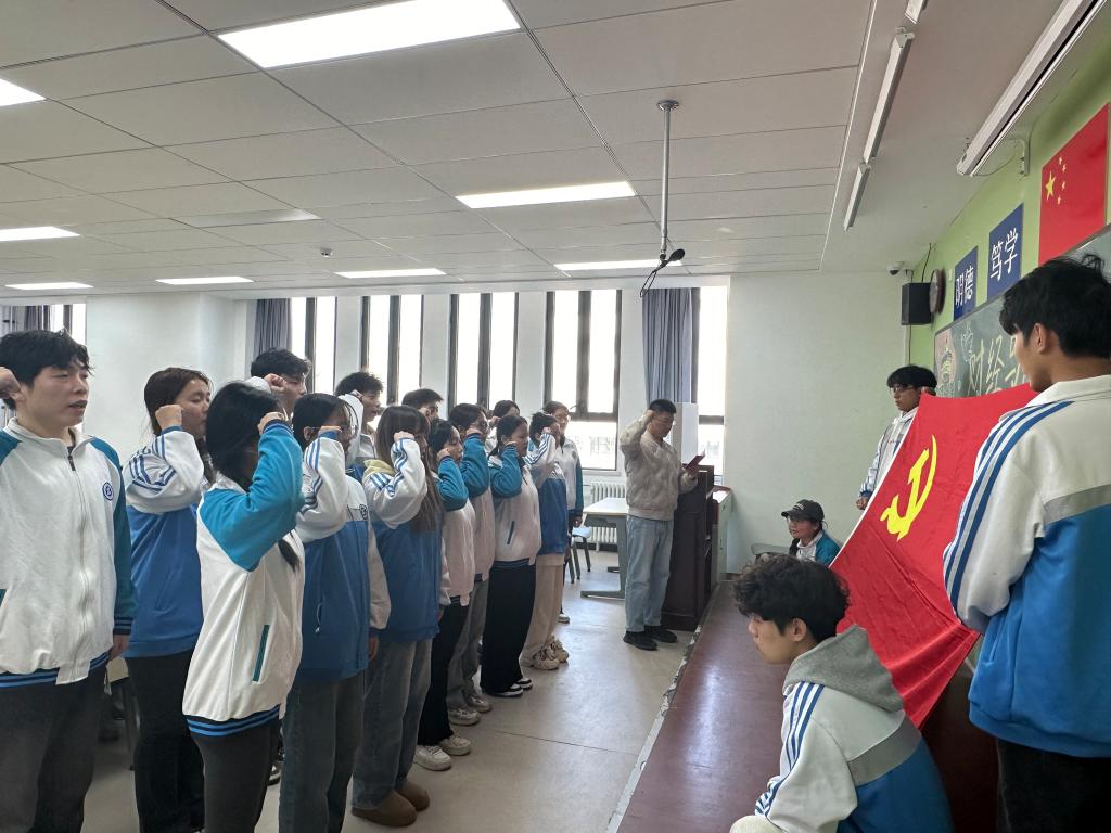 最后,在支部教师党员高壮壮的带领下,全体党员高举右拳,面对鲜红的党旗,重温入党誓词。宣誓声响彻会场,字字铿锵、句句有力,让全体党员接受了一次思想上的再教育、心灵上的再洗礼,有效增强了党员的归属感、荣誉感和使命感,也让仪式感的外在形式转化为党员党性意识的自觉提升。