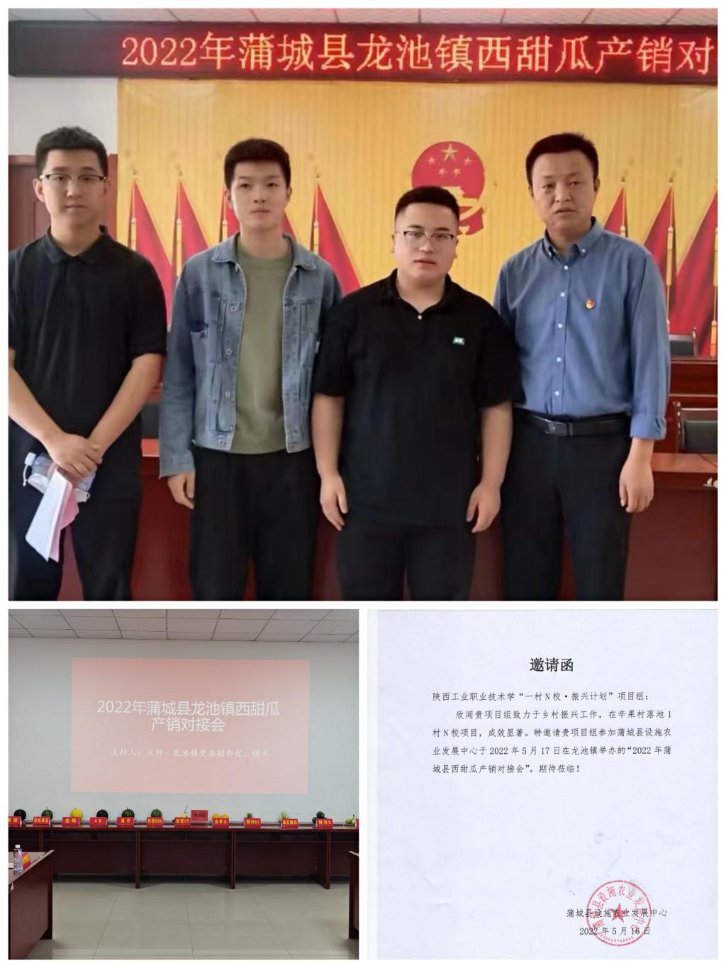 5月17日,2022年蒲城县西甜瓜产销对接会在蒲城县龙池镇召开,产销对接会由蒲城县设施农业发展中心举办。我校“一村N校·乡村振兴”学生创新创业团队作为全省唯一高职院校学生团队受邀参会。