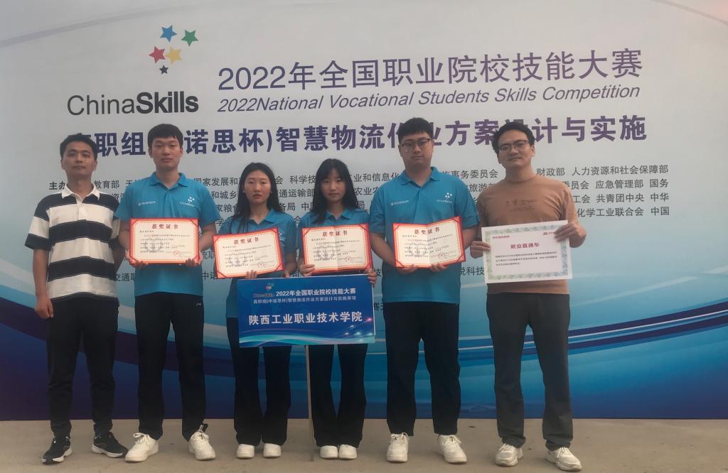8月22日-24日,2022年全国职业院校技能大赛高职组(中诺思杯)智慧物流作业方案设计与实施赛项在天津交通职业学院举办。我校商贸与流通学院由高贺云、王晓伟老师指导,现代物流管理专业李晨欢、李鼎烨、梁娜、刘根辰4名同学组成的代表队斩获团体三等奖。