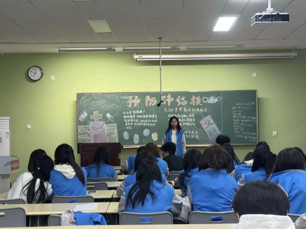 活动以班级为单位,在各班会教室有序开展。班委对结核病防治资料进行宣讲,从结核病的病理知识,到在校园环境中的潜在风险,进行了全面细致的讲解。同学们都认真观看,并做好笔记。在讨论环节,同学们踊跃发言,结合自身生活经验,交流对结核病传播途径和预防措施的看法。最后,各班委积极引导同学们正确认识结核病并主动做好各项防护工作,以良好的生活习惯、积极的心态、强健的体魄以及均衡健康的饮食远离结核病的侵扰。