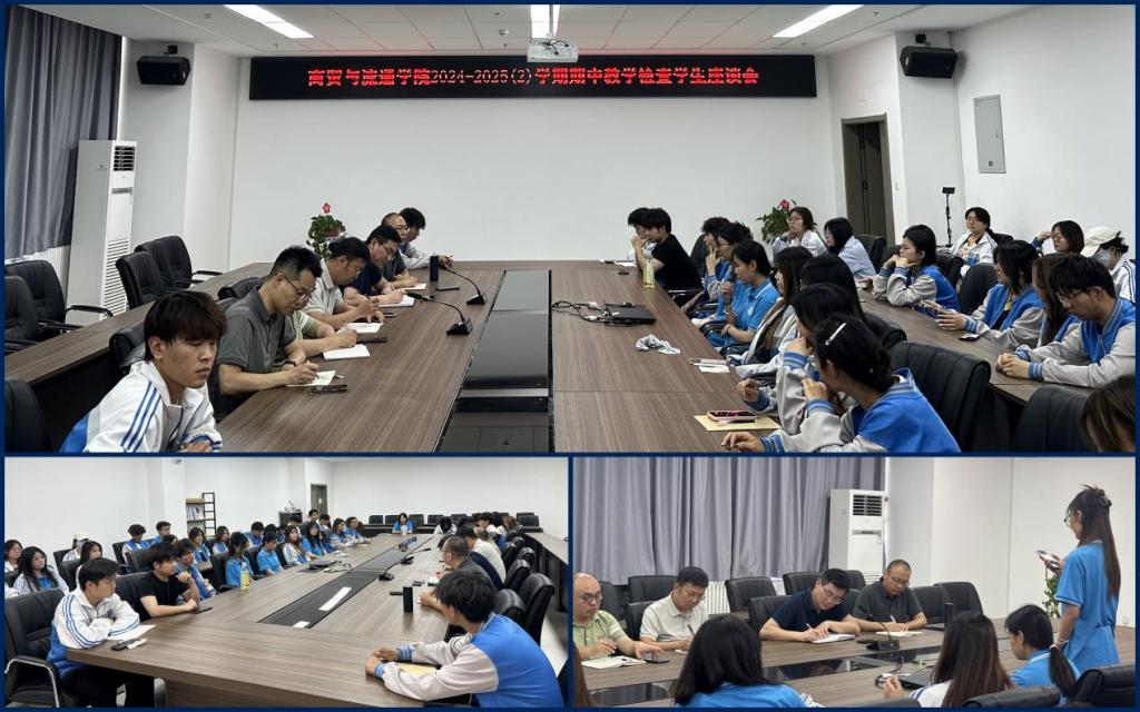 为深入贯彻落实立德树人根本任务,精准掌握学生在学习、生活、实践等方面的实际需求与意见建议,进一步推动教学改革与服务保障质量提升,5月20日下午,商贸学院在崇理楼B604会议室召开期中教学检查学生座谈会。商贸学院党总支副书记蒋鹏,副院长张光(主持工作)、副院长杨涛,教学办主任赵彧,实训中心主任王蒙蒙,学工办主任王禹程及40名来自各专业各年级的学生代表参加会议。
