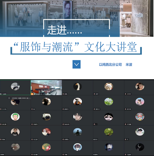 9月24日,化工与纺织服装学院邀请以纯西北分公司人力资源总监米波通过腾讯会议线上平台做了题为“服饰与潮流”文化大讲堂,学院纺织、服装等专业师生120余人进行了远程聆听。