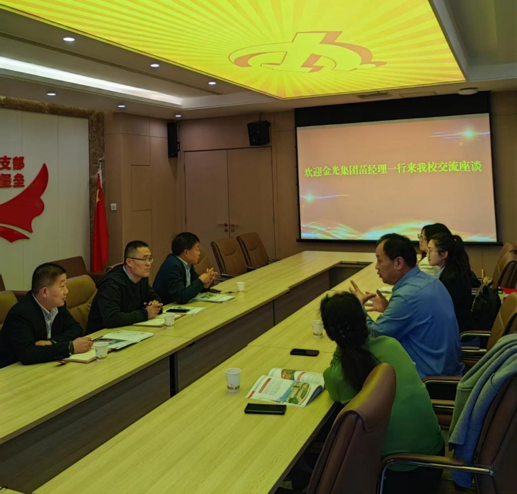10月18日下午,金光集团苗文峰总经理一行5人来我校考察交流。化工与纺织服装学院、电气工程学院、航空工程学院及骨干教师代表陪同座谈。座谈会由化工与纺织服装学院杨修国书记主持。