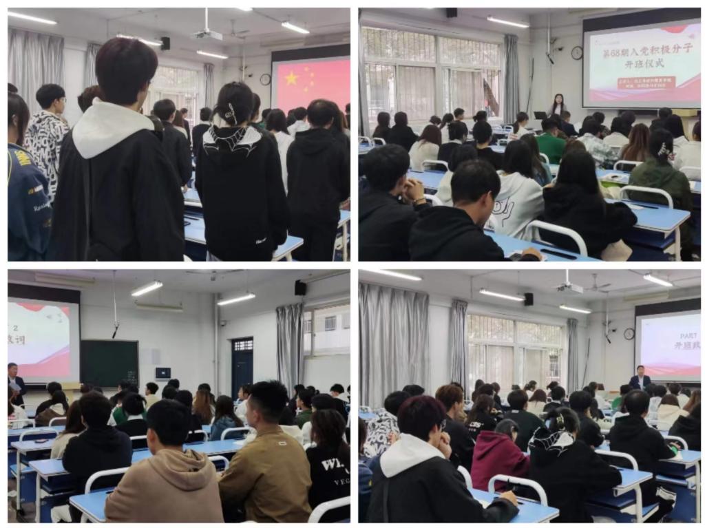 开班仪式在庄严的国歌声中拉开帷幕。杨修国书记作开班致词,他强调了举办本次培训班的重要性,并指出,希望广大同学珍惜此次培训机会,进一步端正入党动机、提高思想政治素质,树立为共产主义和中国特色社会主义事业奋斗终身的坚定信念。随后,分析2301班朱妍妍同学代表入党积极分子作表态发言,她表示,将认真对待本次开班仪式,端正态度、坚定理想、认真学习,争取早日成为一名合格的中国共产党党员。最后,支部书记闫琼讲述了培训安排及注意事项。
