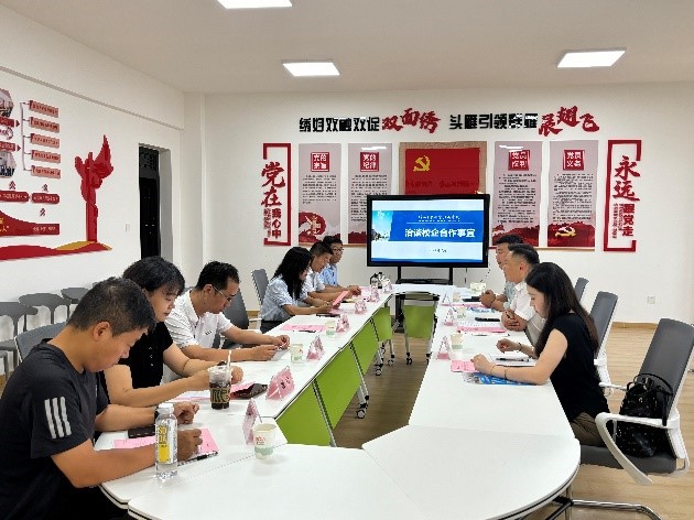 首先,刘迪院长对薛明总经理一行表示热烈欢迎,接着观看了学校专题宣传片《红色匠心》。杨延波副处长介绍了我校校企合作、产教融合等情况。随后,刘迪院长对化工与纺织服装学院的党建工作、专业建设、实训室建设、师资建设、技能大赛、人才培养等情况做了重点介绍。薛明总经理对我校的热情接待表示感谢,并分别从公司的整体情况、基本业务、校企合作等方面详细做了介绍,同时对开展校企合作方面提出了初步设想。