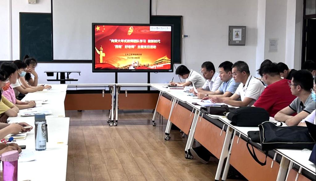 为了积极响应《关于开展“全国高校黄大年式教师团队”学习宣传活动的通知》(陕工院办字〔2022〕13号)文件精神,6月6日下午,土木工程学院党总支在精艺楼4001开展了“向黄大年式教师团队学习 做新时代‘四有’好老师”主题党日活动,活动由党总支书记张科海主持。