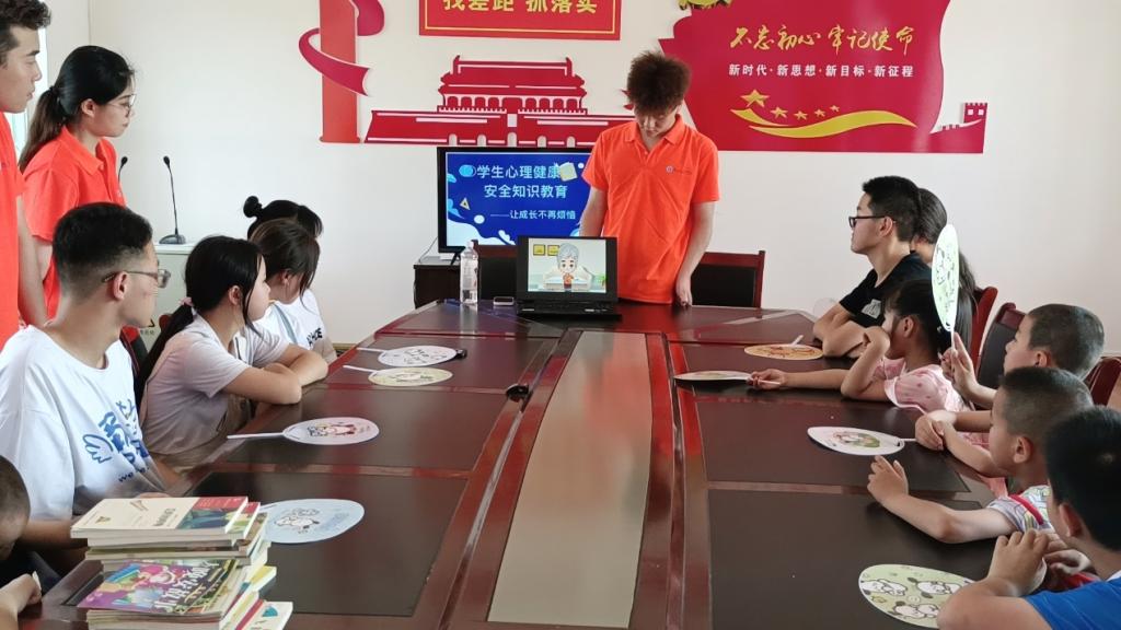 二、心理健康教育。实践团成员赵大森以“关爱自己,从‘心’开始”为题,以知识讲解和游戏互动相结合的方式,引导孩子们健康成长,树立正确的价值观念,培育未成年人健康心理、健全人格。最后,志愿者给孩子们提出两点建议,以便应对心理问题。一是养成良好的生活习惯;二是掌握必要的沟通技能。孩子们深受启发,也表示了真诚谢意。