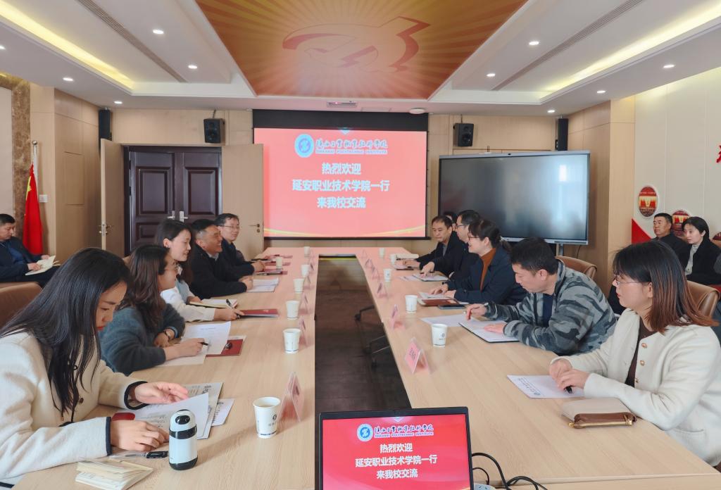 会议伊始,赵娇部长对延安职业技术学院李延生主任一行表示热烈欢迎。双方共同观看我校宣传片《红色匠心》之后,赵娇部长详细介绍了我校公共课教学部在教师队伍建设、人才培养、课程设置、教科研建设及技能大赛等方面的工作情况,热情分享了部门建设与管理的好方法、好经验。公共教学党总支书记苏宏志也就公共教学党建工作做了详细介绍。李延生主任对我校的热情接待表示感谢,同时介绍了延安职业技术学院的公共课建设发展的基本情况,并希望与我校进一步加强联系,深化交流。随后,双方相关部门就工作中遇到的重点难点问题进行了深入交流探讨。