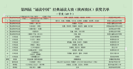 近日,陕西省教育厅办公室公布了第四届“诵读中国”经典诵读大赛和“笔墨中国”汉字书写大赛(陕西赛区)评选结果,我校大学生艺术团上报的朗诵作品《路标与灯盏》荣获一等奖,书法作品荣获三等奖,美育部教师张戈、赵恬添荣获优秀指导教师奖。
