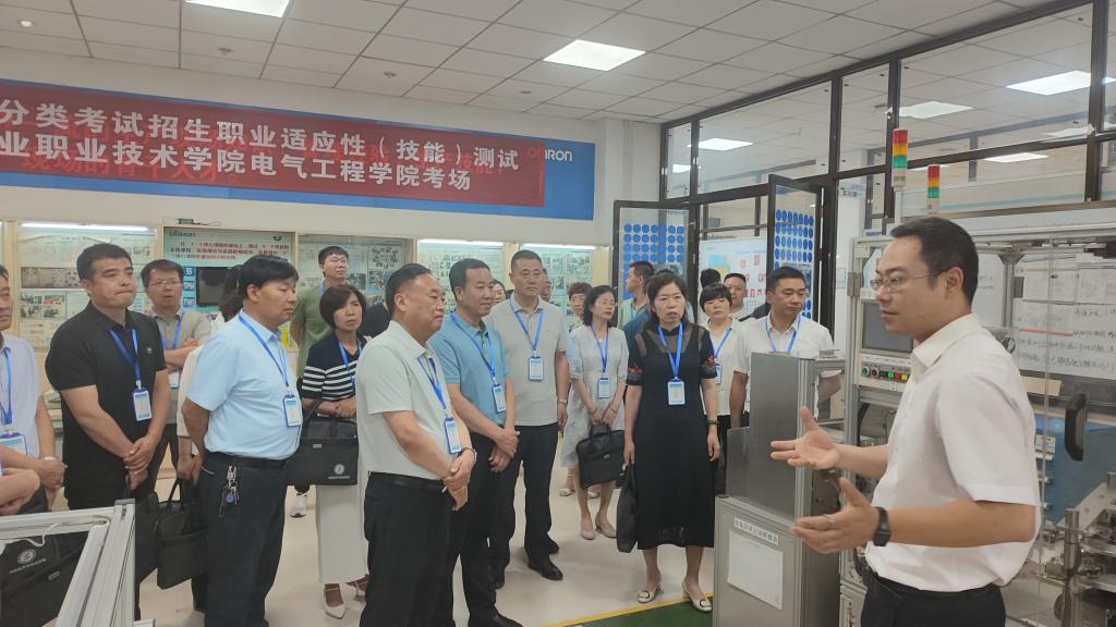 开班典礼前,苏永兴书记和张永良校长以及培训学员现场观摩了汽车实训室、机加工中心、材料学院实训室、欧姆龙实训室和马克思主义学院教学实训室等地,段峻副院长陪同参观。